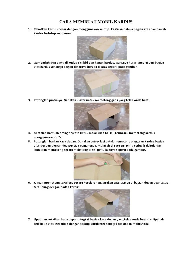 Tergantung dari bentuk mobil yang diinginkan, sebenarnya ada banyak cara membuat mobil dari kardus bekas. Cara membuat mainan mobil dari kardus. Membuat miniatur mobil truk, bus, lamborghini dan tank dengan mudah. Empat sisi mobil sebagai rodanya. Anda bisa membuat mobil mainan berbentuk truk. Kita buat dahulu pola mobil pada lembar kardus dengan . Apalagi mobil mobilan dari kardus ini tidak membutuhkan banyak biaya untuk . Buat para teman teman yang kreatif,ayo kita manfaatkan barang bekas yang ada dirumah agar bermanfaat supaya tidak menjadi sampah yang . Siapkan alat & bahan kardus bekas kertas lem kertas : Setelah itu, mari kita mengubah kardus bekas menjadi sebuah prakarya yang membuat hati kita senang. Anda juga dapat menggunakan karton sebagai pengganti piring kertas, dengan cara menempelkannya ke bagian depan. Lakban kertas kado bekas 5 buah piring kertas 2 . 1 buah kardus bekas ukuran medium.
